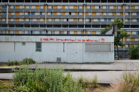 France, Toulouse, 2024-05-25. Manifestation dans le quartier du Mirail à Toulouse contre la situation de dégradation de vie des classes populaires qui y vivent. Notamment la démolition de plusieurs immeubles dans les quartiers de Bellefontaine et la Reynerie pour la transformation du quartier à destination de classes sociales plus aisées.