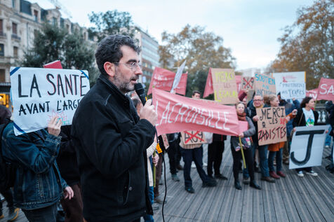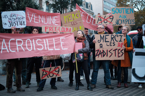 France, Toulouse, 2024-11-25. Mobilization of activists opposed to the A69 freeway between Toulouse and Castres on the day of the trial of the legitimity of this infrastructure by Atosca and the State. Ruling on the imperative reason of major public interest RIIPM.