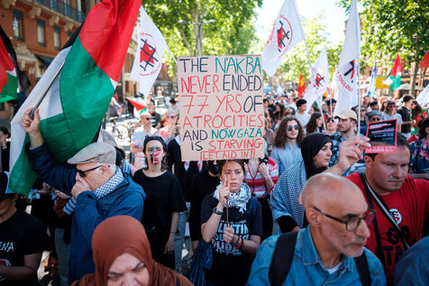 France, Toulouse, 2025-05-17. Demonstration in solidarity with Palestine on the 77th anniversary of the Nakba, the beginning of Israel's colonial project in 1948 that displaced hundreds of thousands of Palestinians from their land.