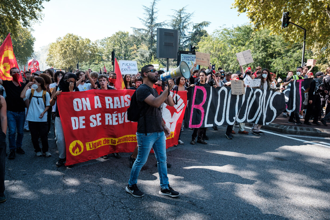 France, Toulouse, 2025-09-18. Manifestation intersyndicale pour l'acte 2 du mouvement social "Bloquons tout" face à la politique d'austérité économique et situation de raz le bol des classes populaires et moyennes du pays.