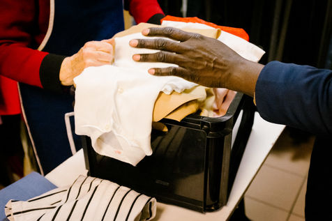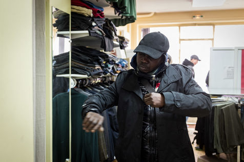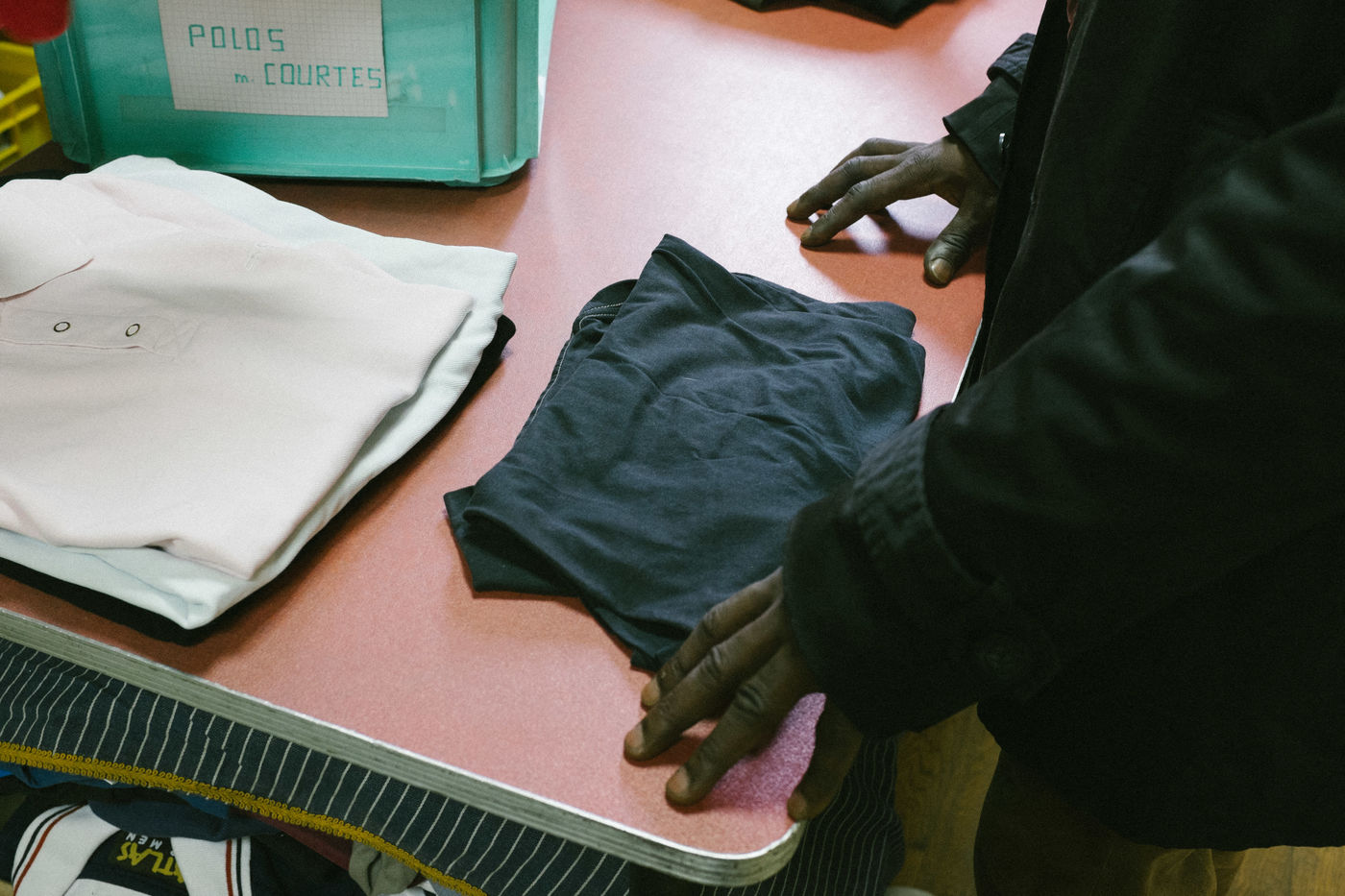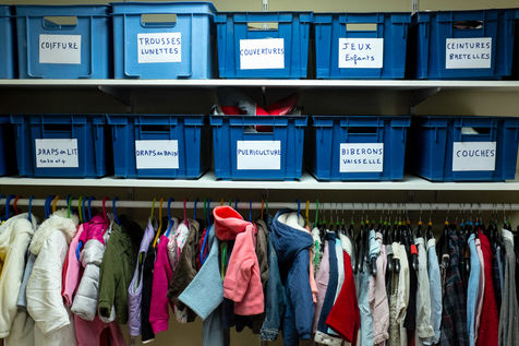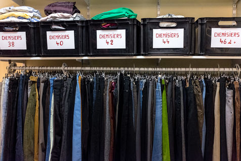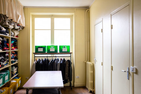 For clothing, a cloakroom is opened and run by volunteers. On Monday and Wednesday it welcomes women and children; and men on Tuesdays and Thursdays. Persons must be issued with a voucher issued by a Parisian social action center (C.A.S.) or a Paris