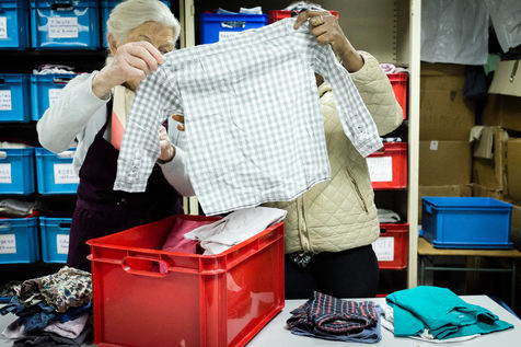 welfare association. They can come twice a year and leave with a complete outfit (shoes, pants, skirts, sweaters, etc.).