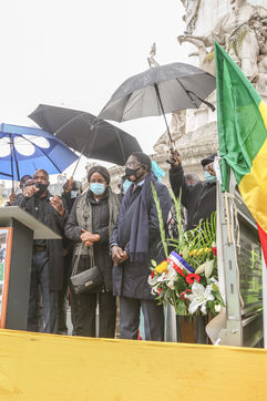 URD leader and Malian opposition figure SOUMAILA CISSE in Place de la Republique to thank the diaspora after his release, October 24, 2020, Paris, France.
