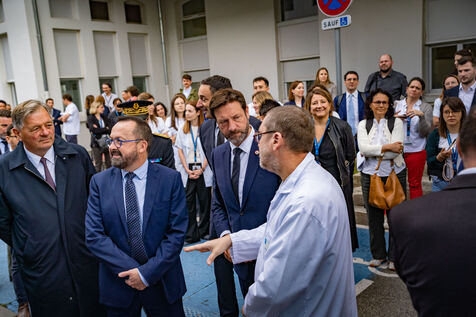 The inauguration gathered key figures: Yannick Neuder, Minister in charge of Health and Access to Care; Fabrice Pannekoucke, President of the Auvergne-Rhône-Alpes Region; Cyrille Isaac-Sibille, Member of Parliament from the Democratic group; and Raymond Le Moign, Director General of the Hospices Civils de Lyon (HCL).