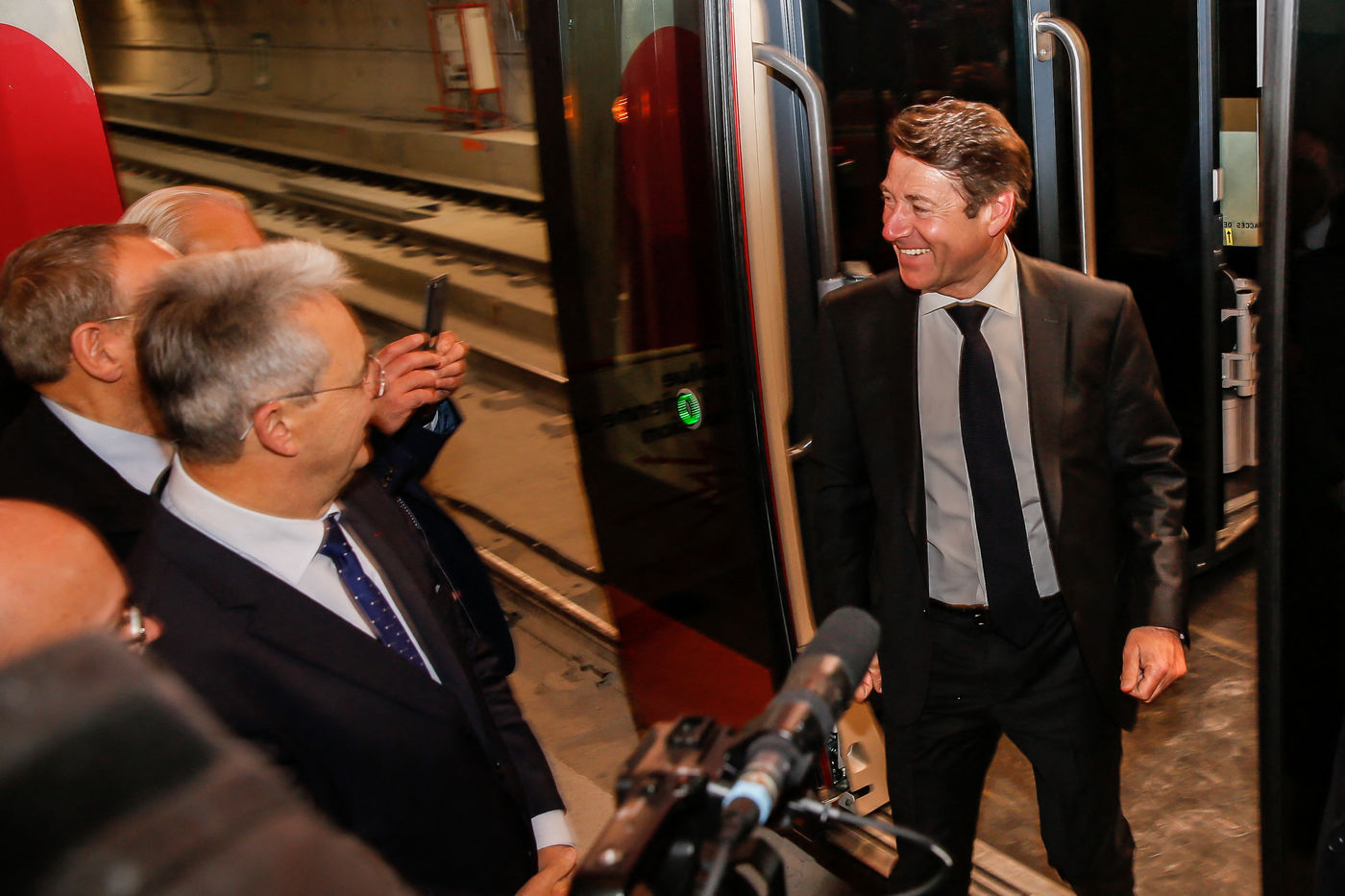 Mr Christian Estrosi inaugurates the testing of NICE tramway trains at Alsace Loraine station.