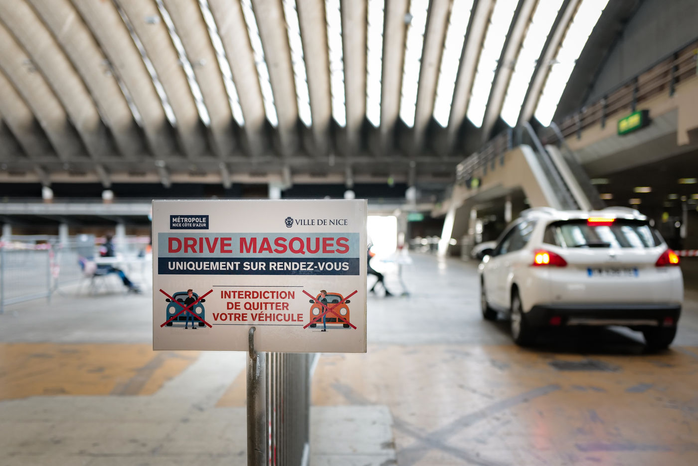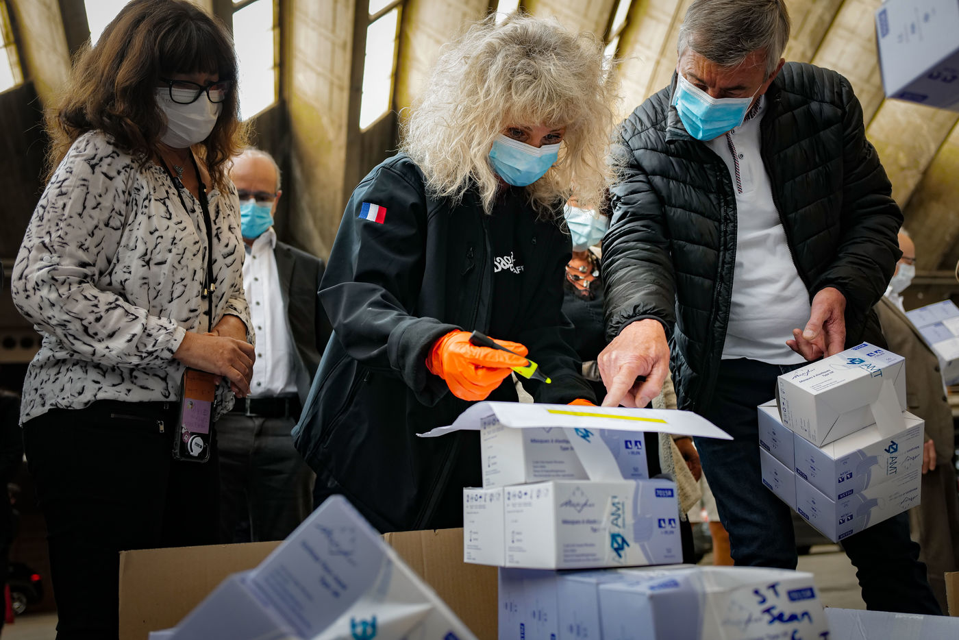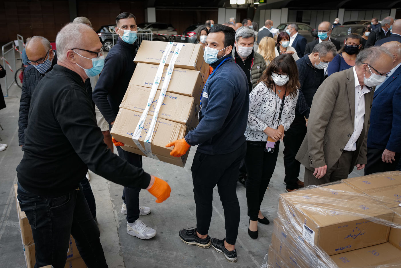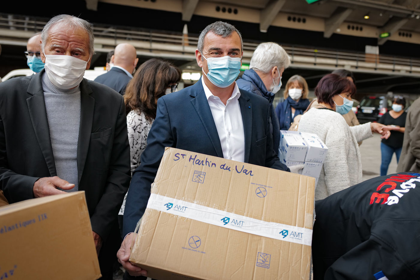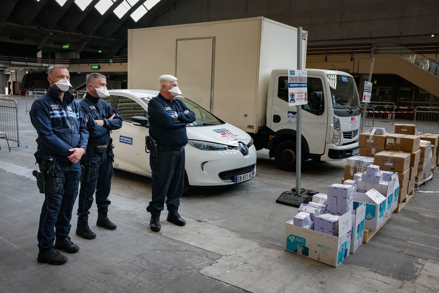 About forty mayors were gathered in the Drive-Mask area of Nice to receive their batches of equipment.