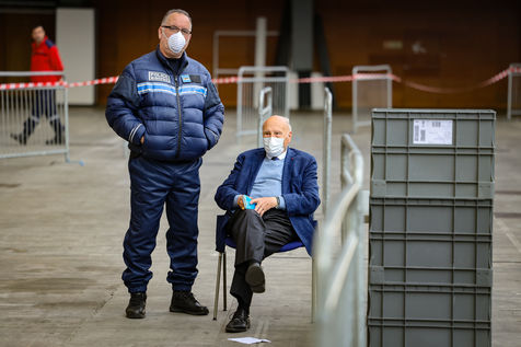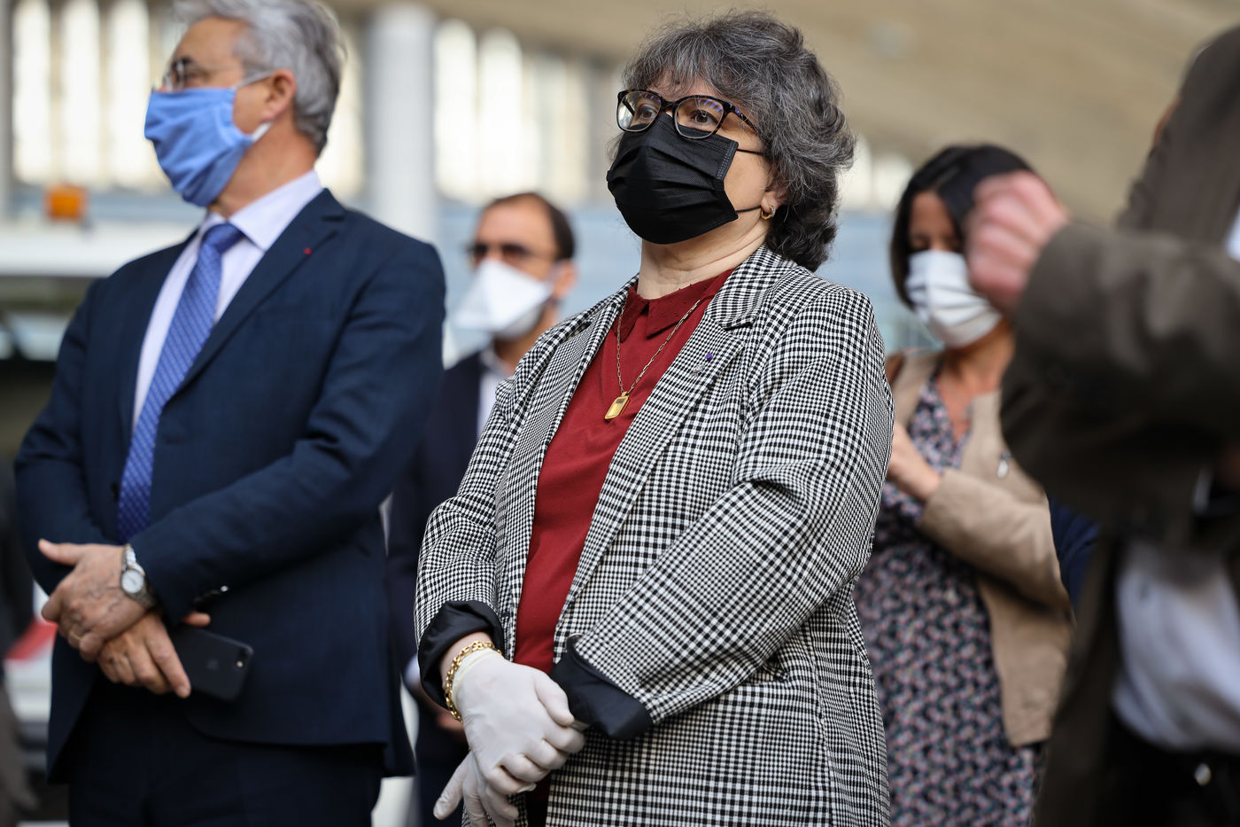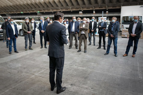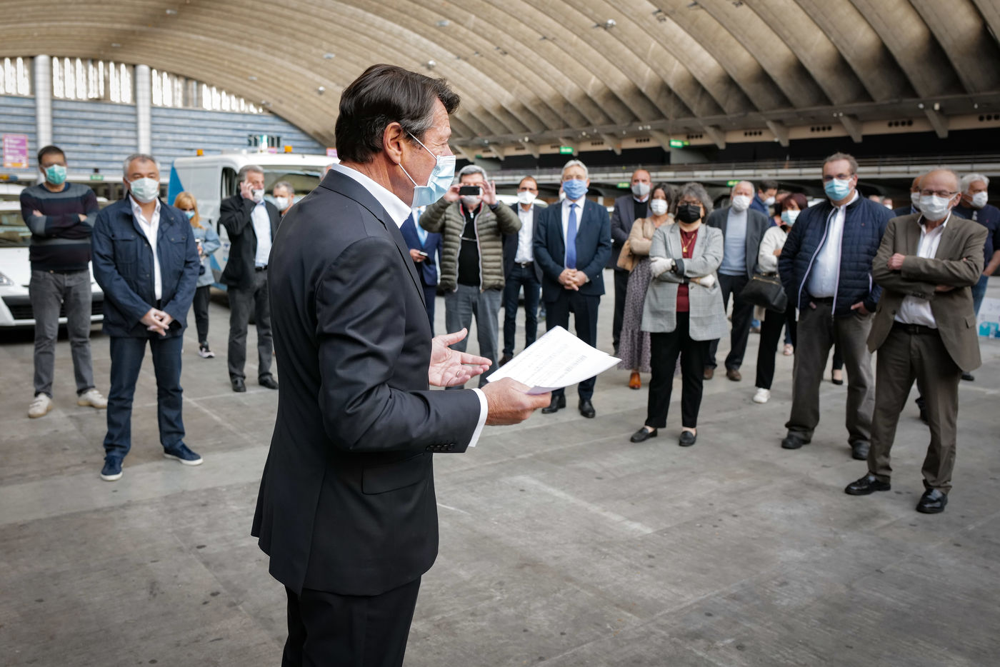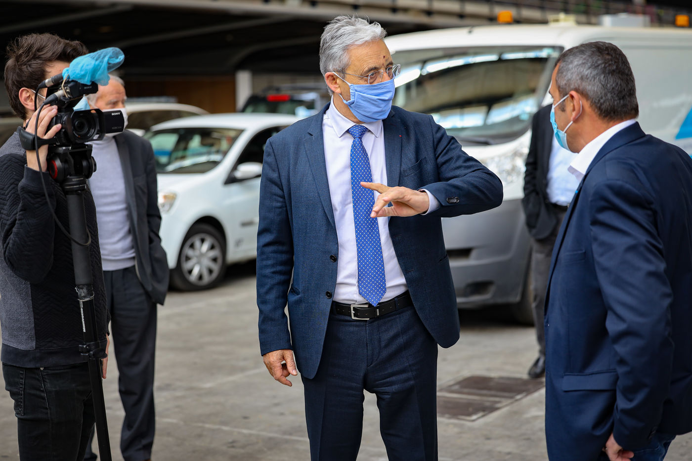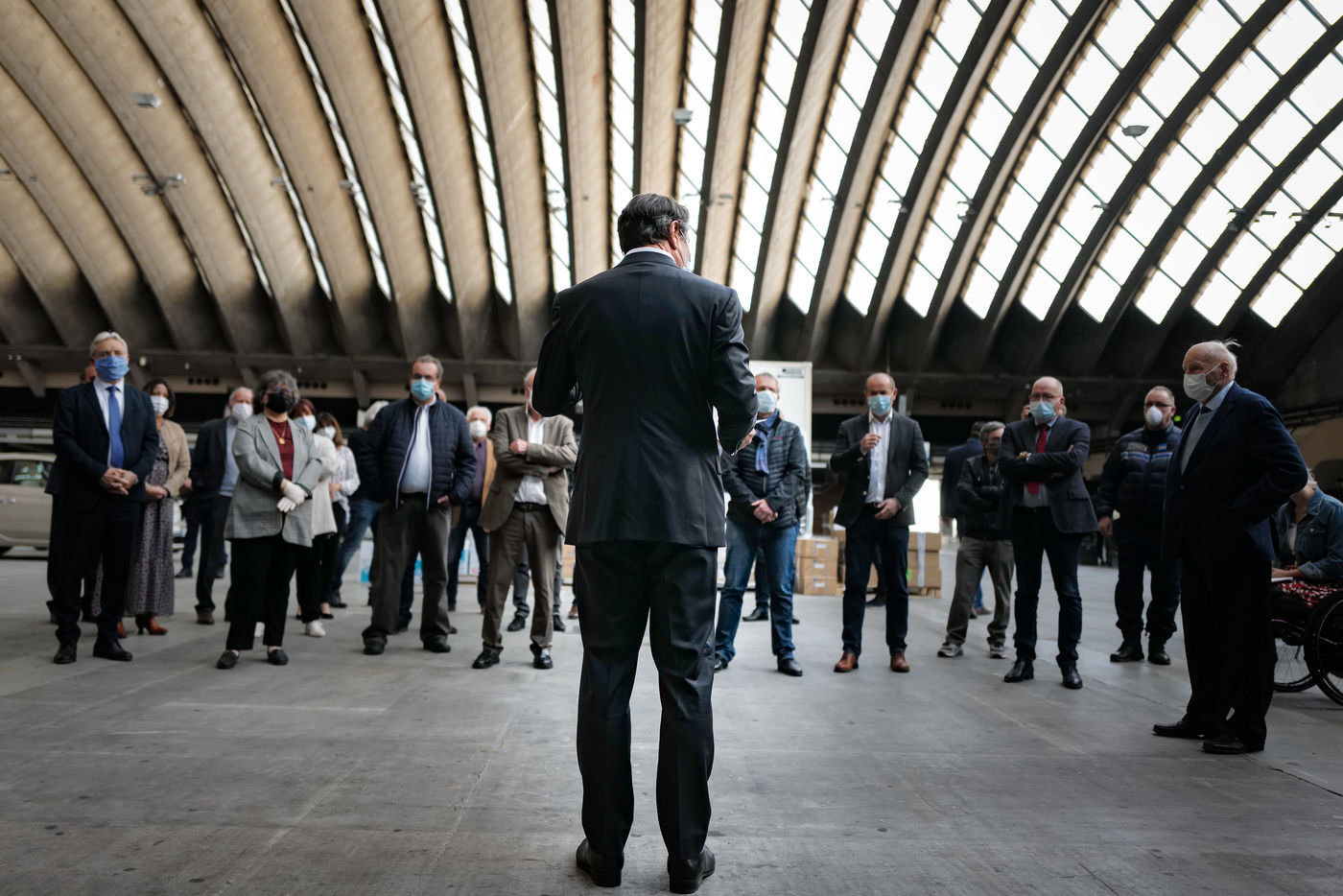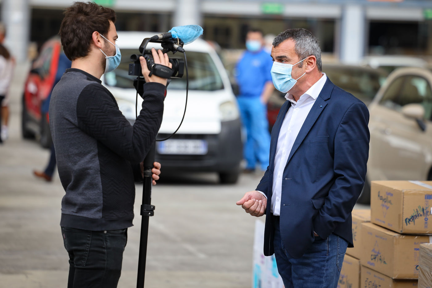 About forty mayors were gathered in the Drive-Mask area of Nice to receive their batches of equipment.