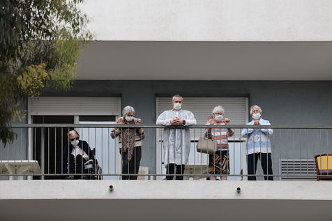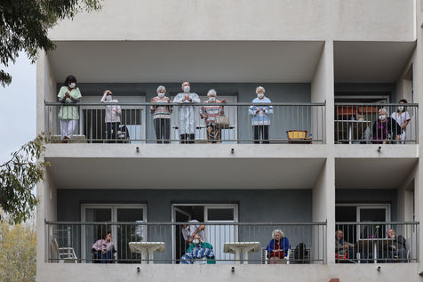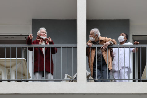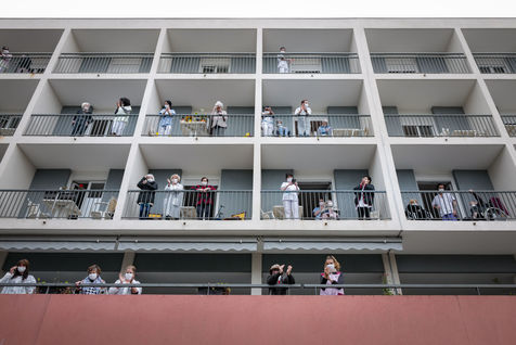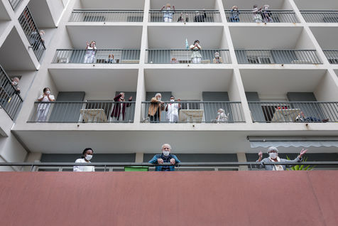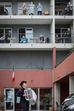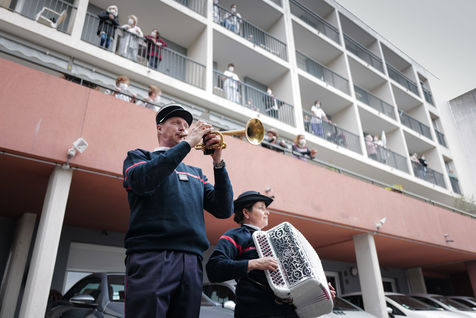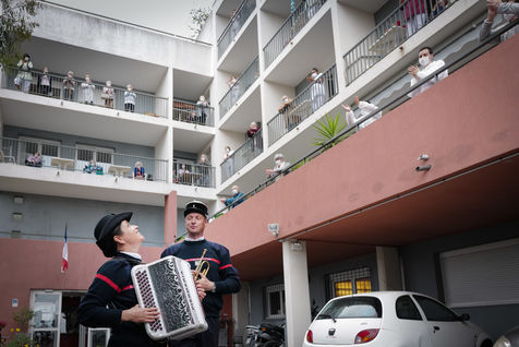 In an EHPAD (Nursing Home for elderly people) in Nice, a solidarity concert in support of the elderly is organised by the fire brigade orchestra. The confined residents listen to the music from their balcony or window. An initiative that offers a friendly interlude and brings a little joy to the elderly who have been deprived of visits for several weeks.