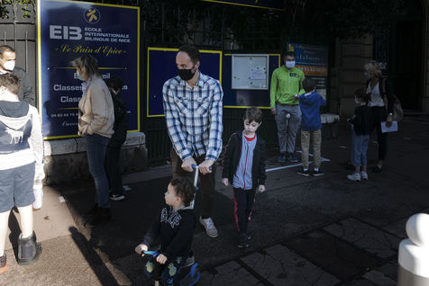 Le 12 Mai 2020 marque la date de rentrée scolaire après 56 jours de confinement Covid-19 . A l'Ecole primaire Simone Veil de Nice, les parents accompagnent leur jeunes enfants avec inquiétude, mais ils n'ont pas toujours le choix. Les enfants sont parfois masqués, mais ce n'est pas une obligation. Les mesures sanitaires ont été prises avec la désinfection des classes la veille, et les marquages au sol de distanciation physique ont fait leur apparition dans la cour et les classes. Le Maire de Nice, Christian Estrosi, a rendu visite aux enfants et aux enseignants pour rappeler les consignes de rigueur.