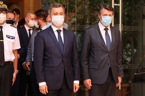 Gérald DARMANIN, new Minister of the Interior, visits Christian ESTROSI in NICE on 13 JULY 2020