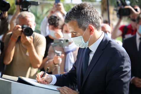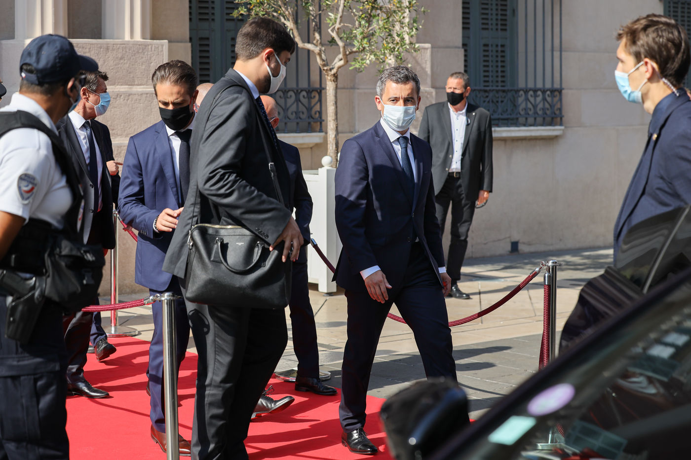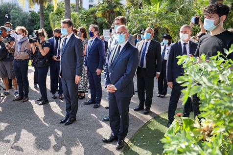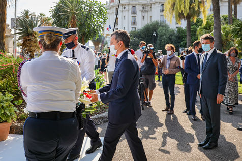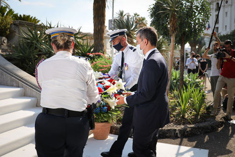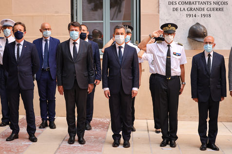 Interior Minister Gérald Darmanin visits Mr. Christian Estrosi in Nice on July 13, 2020, to talk about the fight against terrorism in France, four years after the attack of July 14, 2016 on the Promenade des Anglais. Mr Darmanin is at that time, the target of feminist movements, following the accusations against him.