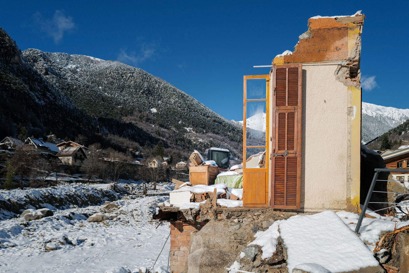 2 months after the ALEX storm, the disaster-stricken Vesubia Valley is struggling to rebuild under the snow. The ruins of houses and the carcasses of cars have become the new scenery for the inhabitants.