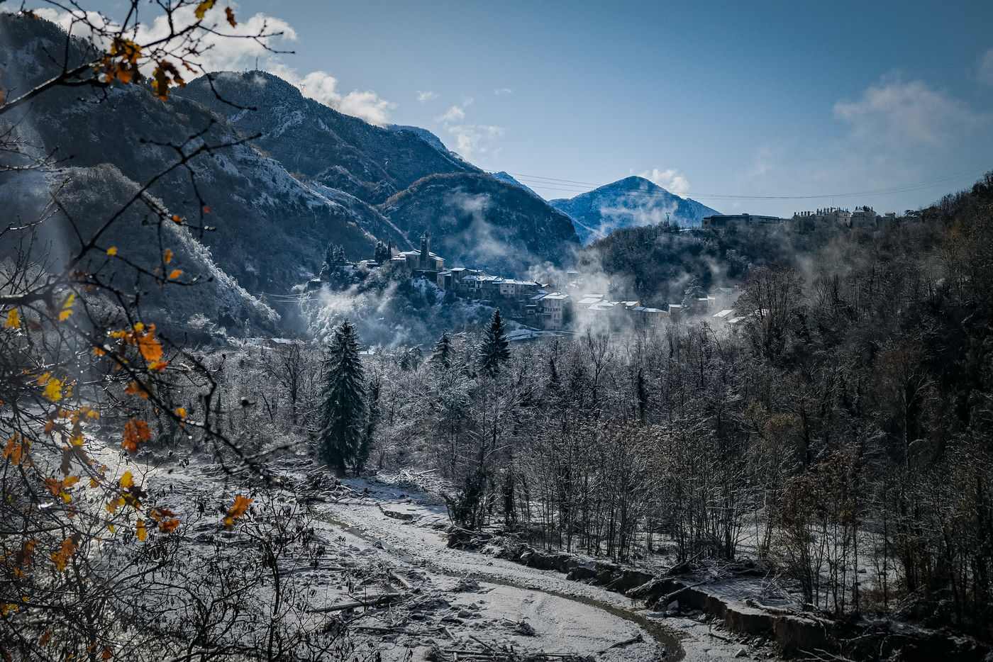 2 months after ALEX, Saint Martin Vésubie is licking its wounds under the snow.