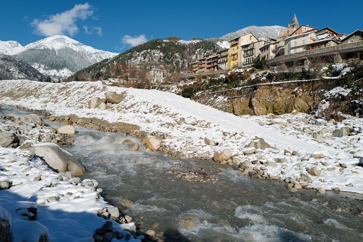 2 mois après ALEX, Saint Martin Vésubie panse ses plaies sous la neige