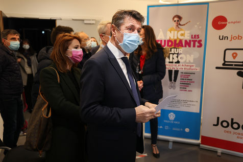 In the midst of an anti-Covid vaccination campaign, Christian Estrosi visited students on February 5, 2021. In this period of health crisis, the city of NICE wants to amplify its actions with young students 18-25 years old and launches a plan of solidarity actions to bring them answers to the problems they encounter: Food aid, health, social, housing, transport, leisure and culture, the objective is to enable young people to meet their needs, to continue their learning and study, to succeed in their entry into working life and to build their future life in serene conditions.