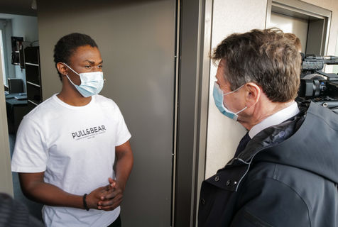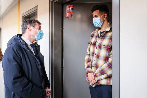 En pleine campagne de vaccination anti-Covid, Christian Estrosi a rendu visite le 5 février 2021 à des étudiants. En cette periode de crise sanitaire, la Ville de NICE veut amplifier ses initiatives auprès des 18-25 ans et lance un plan d' actions solidaires pour leur apporter des réponses aux problématiques qu'ils rencontrent : Aide alimentaire, santé, social, logement, transports, loisirs et culture... l'objectif est de permettre aux jeunes de subvenir à leurs besoins, de poursuivre leur parcours d'apprentissage et d'etudes et de réussir leur entrée dans la vie active.