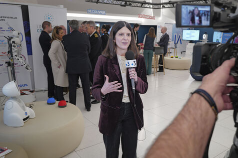 Clara CHAPPAZ, ministre française de l'intelligence artificielle et de l'économie numérique, en visite sur la technopole de Sophia-Antipolis pour rencontrer les acteurs locaux travaillant sur l'intelligence artificielle. Les élus locaux de Biot, Antibes, Valauris se sont retrouvé autour de la Ministre à la Maison de l'Intelligence artificielle.