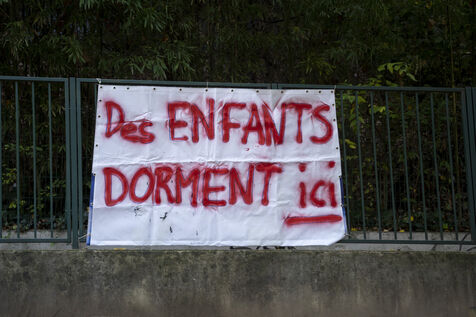 WORK IN PROGRESS - France, Michel Servet school in Lyon occupied since Monday, November 14, 2022 to welcome families sleeping in the street with children attending the school. It is the teachers and the parents of the students who come to the rescue of the homeless children to offer them a roof over their heads and a minimum of dignity by sleeping in warmth and having access to hot water.