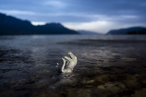 À chaque crépuscule, j'errais autour d'un lac, le coffre rempli de jouet pour trouver le bon lieu et sentir quel jouet allé pouvoir y couler avant de le mettre en scène.