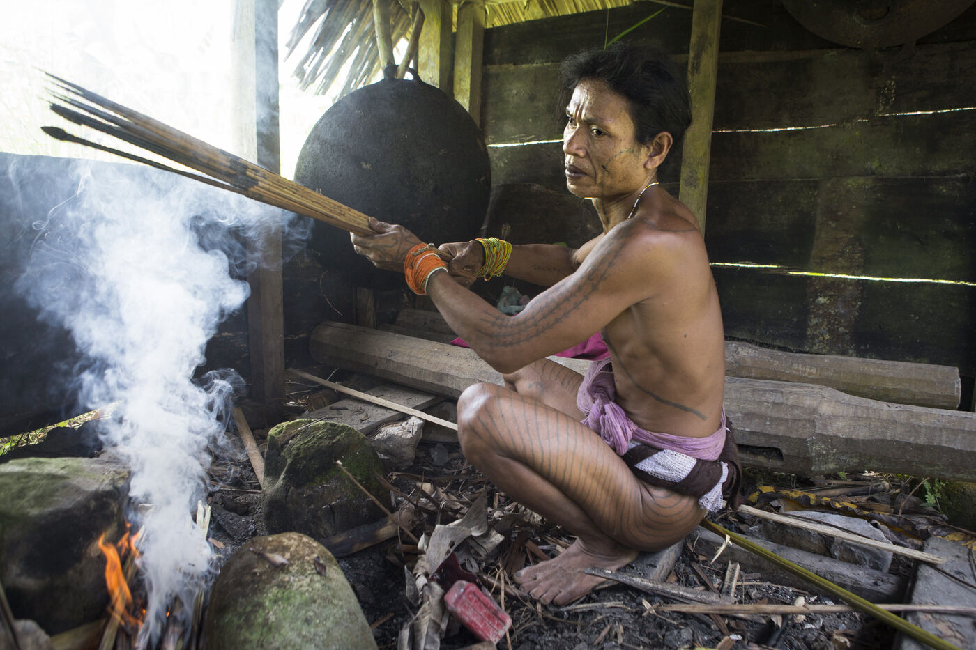 The Mentawai people, also called flower-Men, live on a small archipelago located in the Indian Ocean off Sumatra. The largest of those islands, Pulau Siberut, count forty thousand people and five thousand of them live isolated in the heart of the forest. Indeed, part of this people continues to live in almost self-sufficiency in connection with the nature that surrounds them.