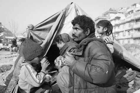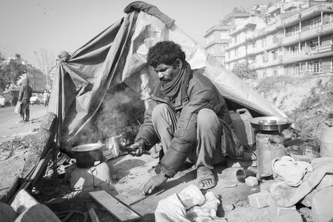 Nepal - Report on a family of stonemasons living in a tent between the ring road and a gutter