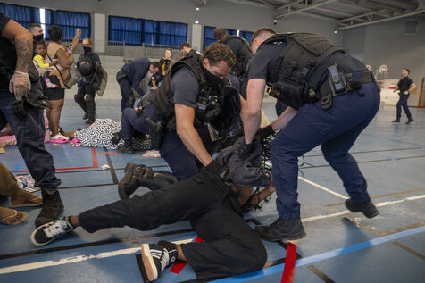 Expulsion of women and children following the occupation of a gymnasium in Lyon