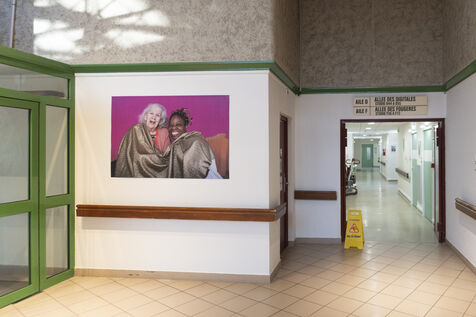 The result, installed in the hall and corridors of the Ehpad, brings colour to the space and shows these links to all the people who live there and to their families.