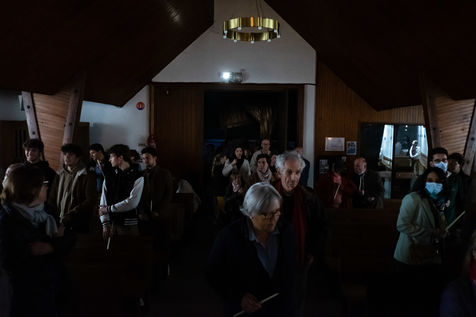 France, Saint Germain en Laye, 2022/04/16. A mass is given during the Easter Vigil in the parish of Saint Leger. Photography by Alexandre Bre / Hans Lucas.