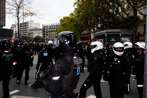 France, Paris, 2022/10/18. Manifestation et greve organisee par les syndicats contre la vie chère: un important service d'ordre est deployé.