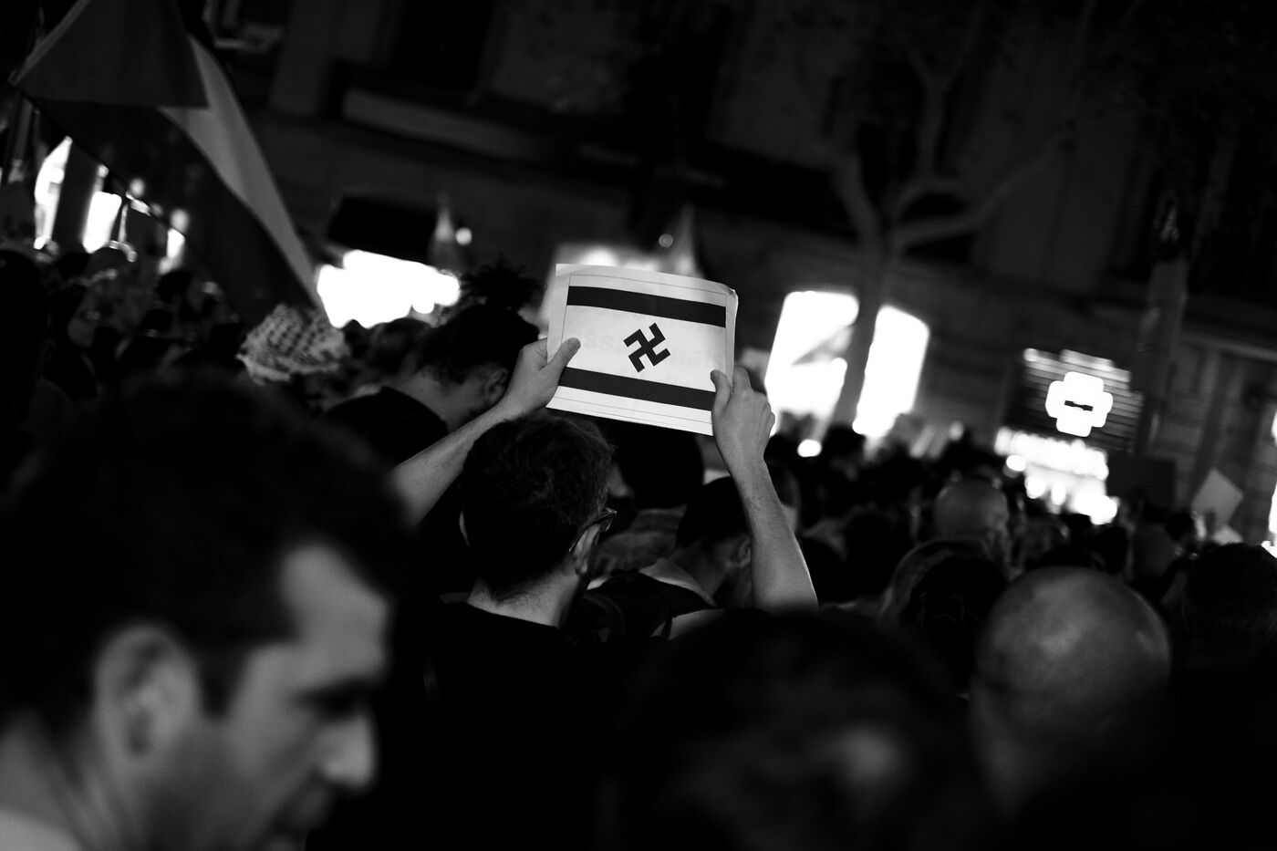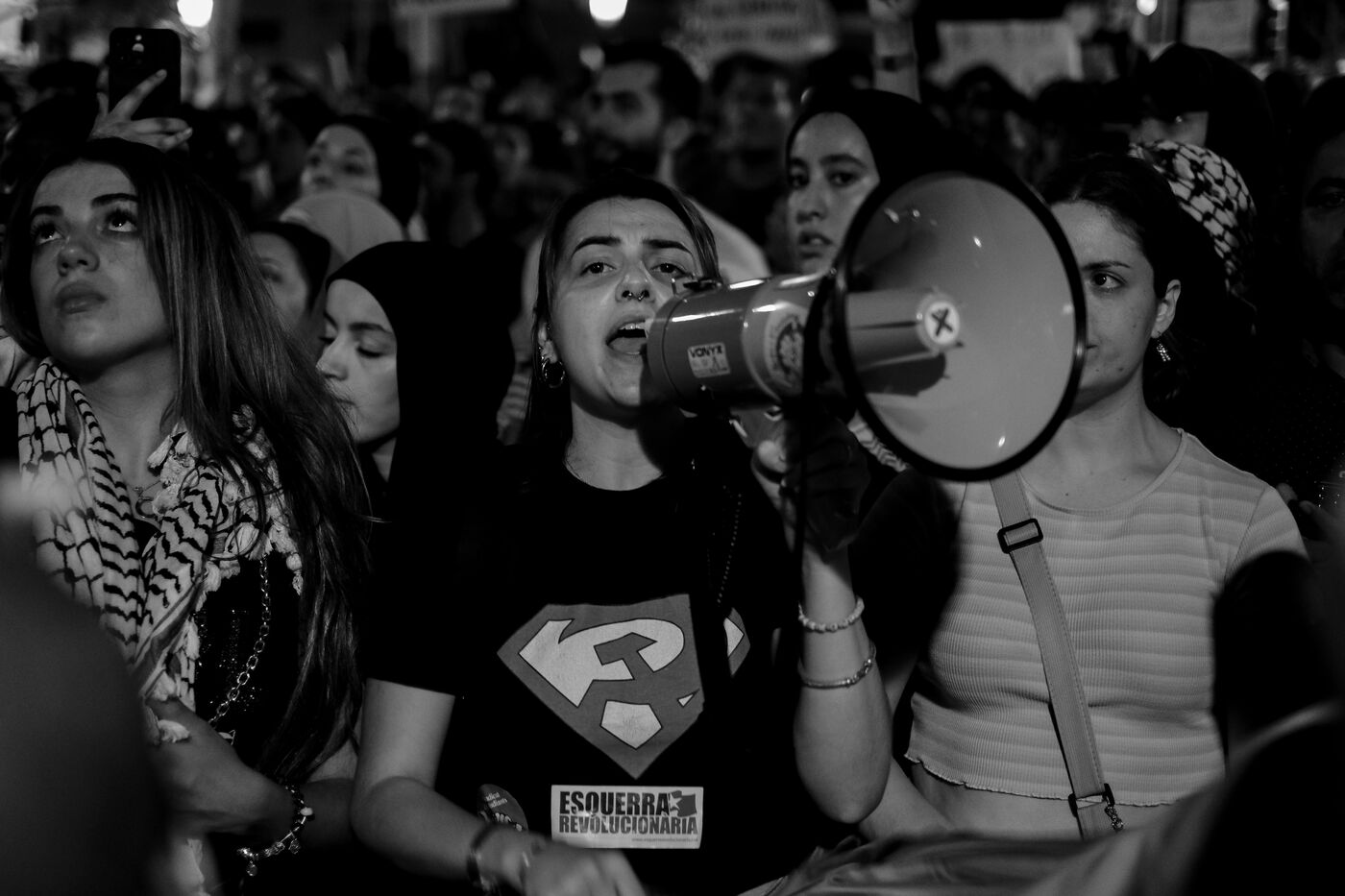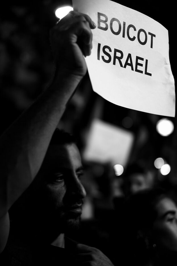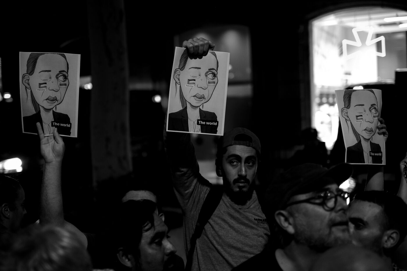 Gathering of several hundred supporters of the Palestinian cause in front of the European Parliament office in Barcelona.