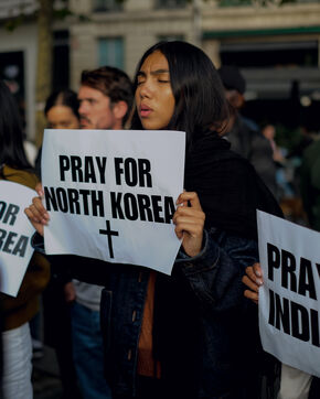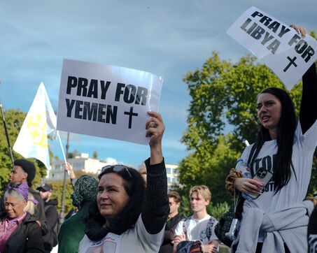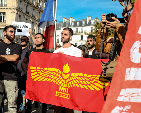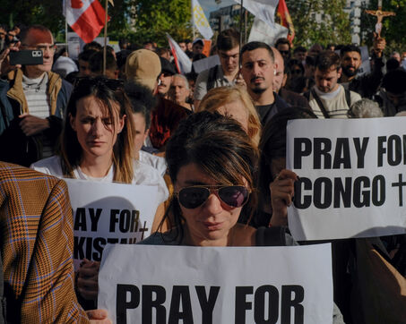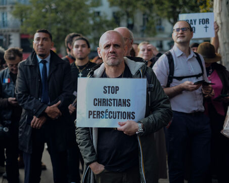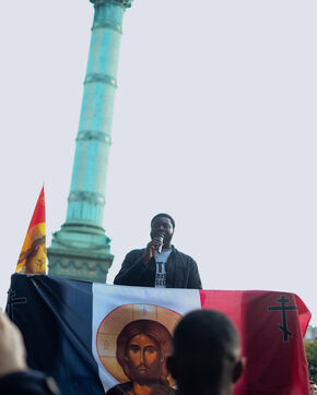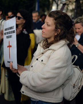 France, Paris, 2025/09/28. Rassemblement contre la christianophobie organisé par diverses associations dont SOS Chrétiens d'Orient pour mettre en lumière la persecution des chrétiens en France et dans le monde.