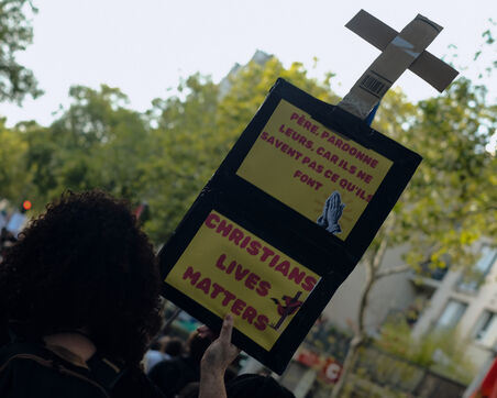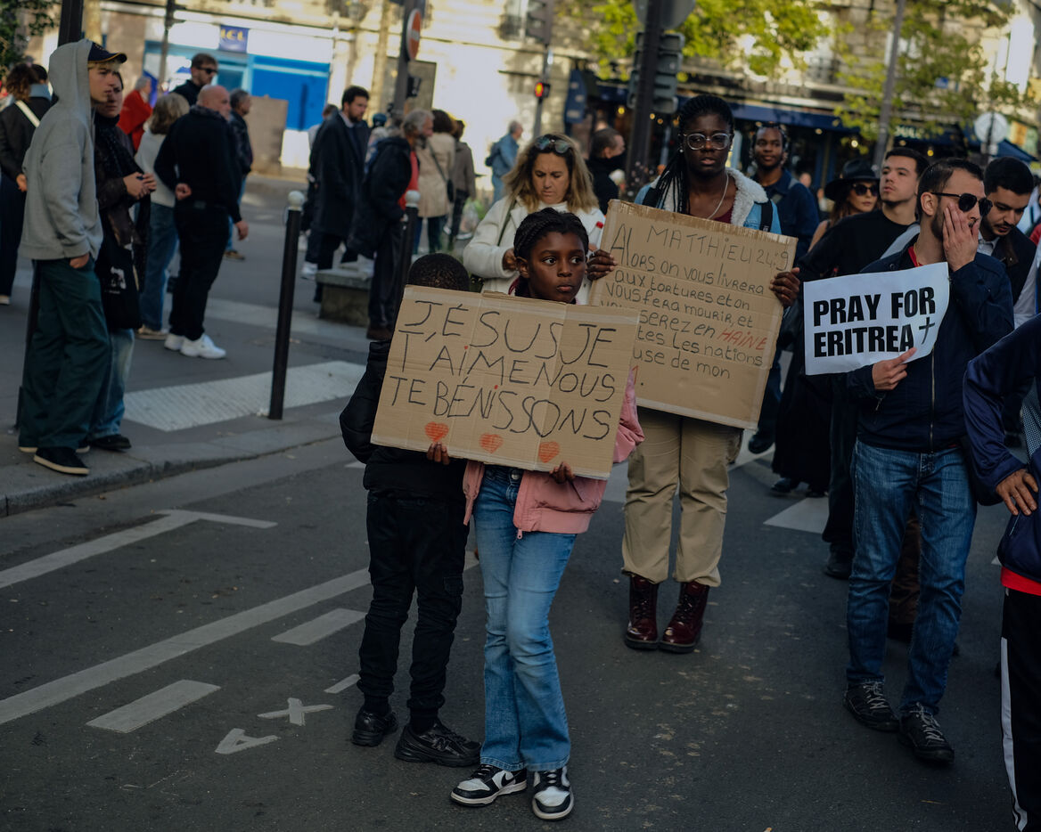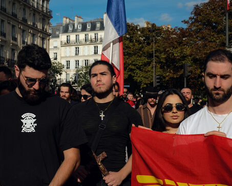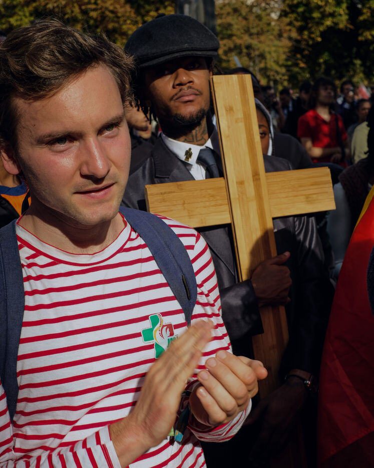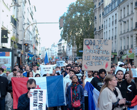 France, Paris, 2025/09/28. A rally against Christianophobia organized by various associations, including SOS Chrétiens d’Orient, to highlight the persecution of Christians in France and around the world.