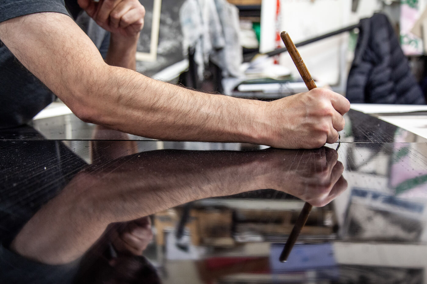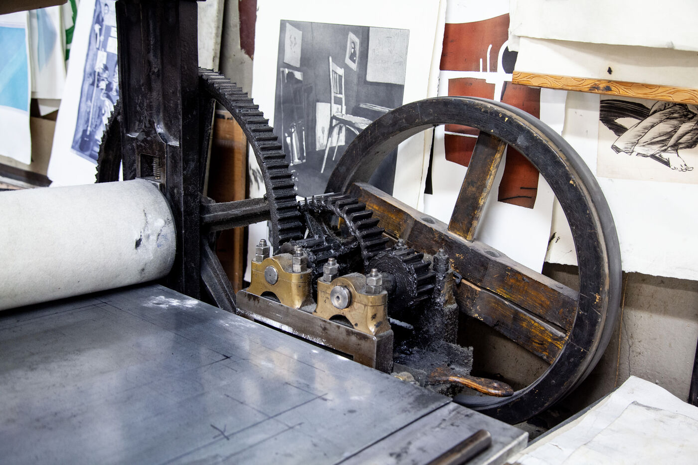 André Moret created his intaglio printing studio in 1947. His son Daniel has since been training apprentices, in whom he instills a love for this artcraft. Located in the heart of the 5th arrondissement, the company has several presses and prints in black or color. It creates original prints from contemporary engraved plates, but also old plates, several institutions and artists therefore work with the studio, such as Cécile Reims, Michel Butor, Pierre Alechinsky, Valérie Jouve.