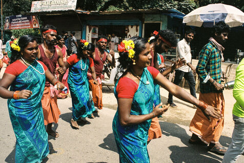 Hindu parade on the hills of Munnar, next to tea plantations in Kerala.