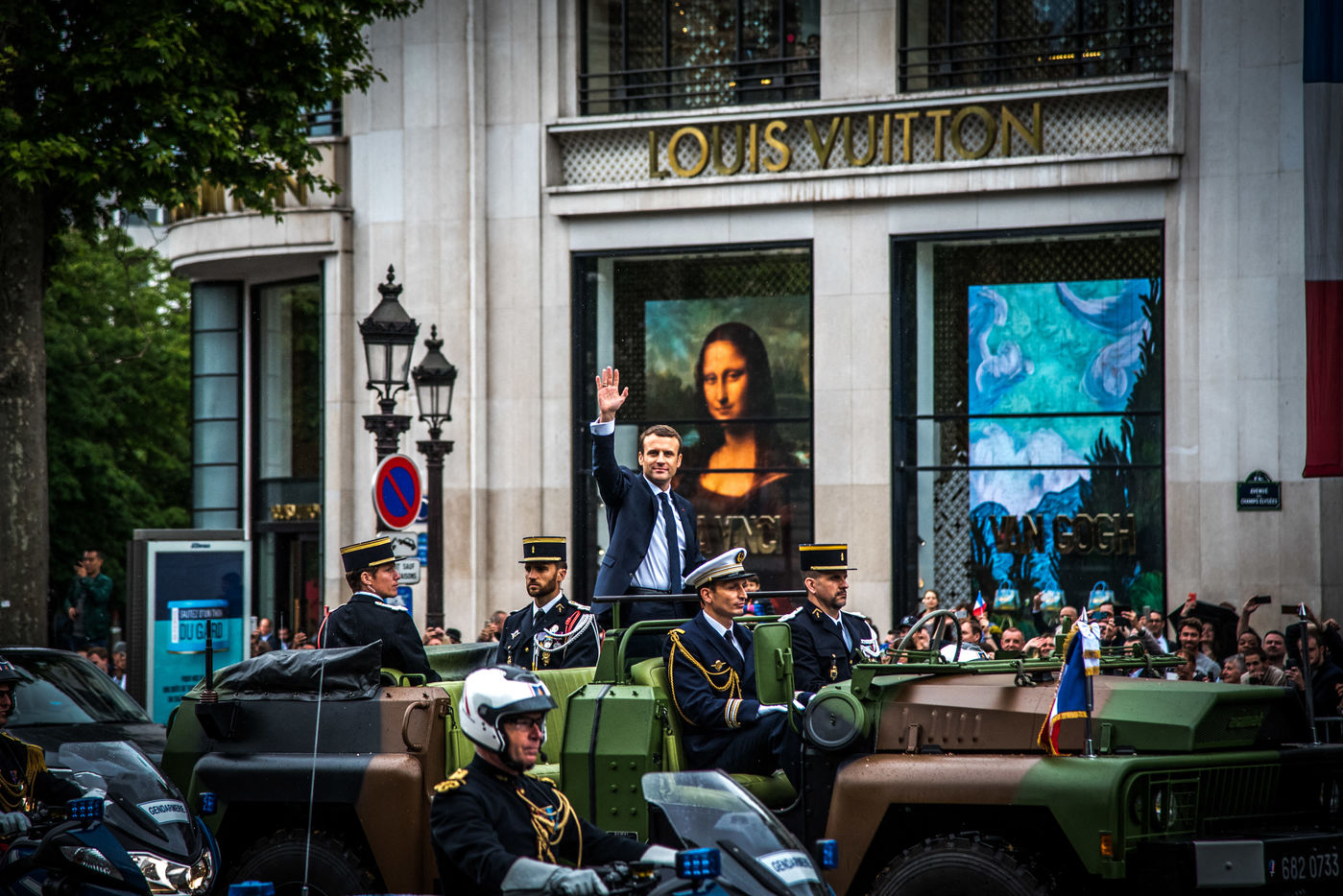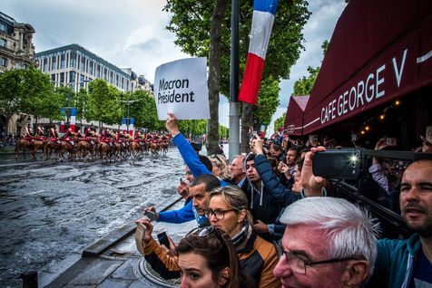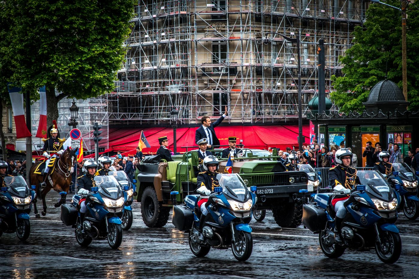 Officially invested, Emmanuel Macron ascended the Champs-Elysees, escorted by motorcyclists and riders of the Republican Guard to revive the flame on the tomb of the Unknown Soldier. May 14th 2017.