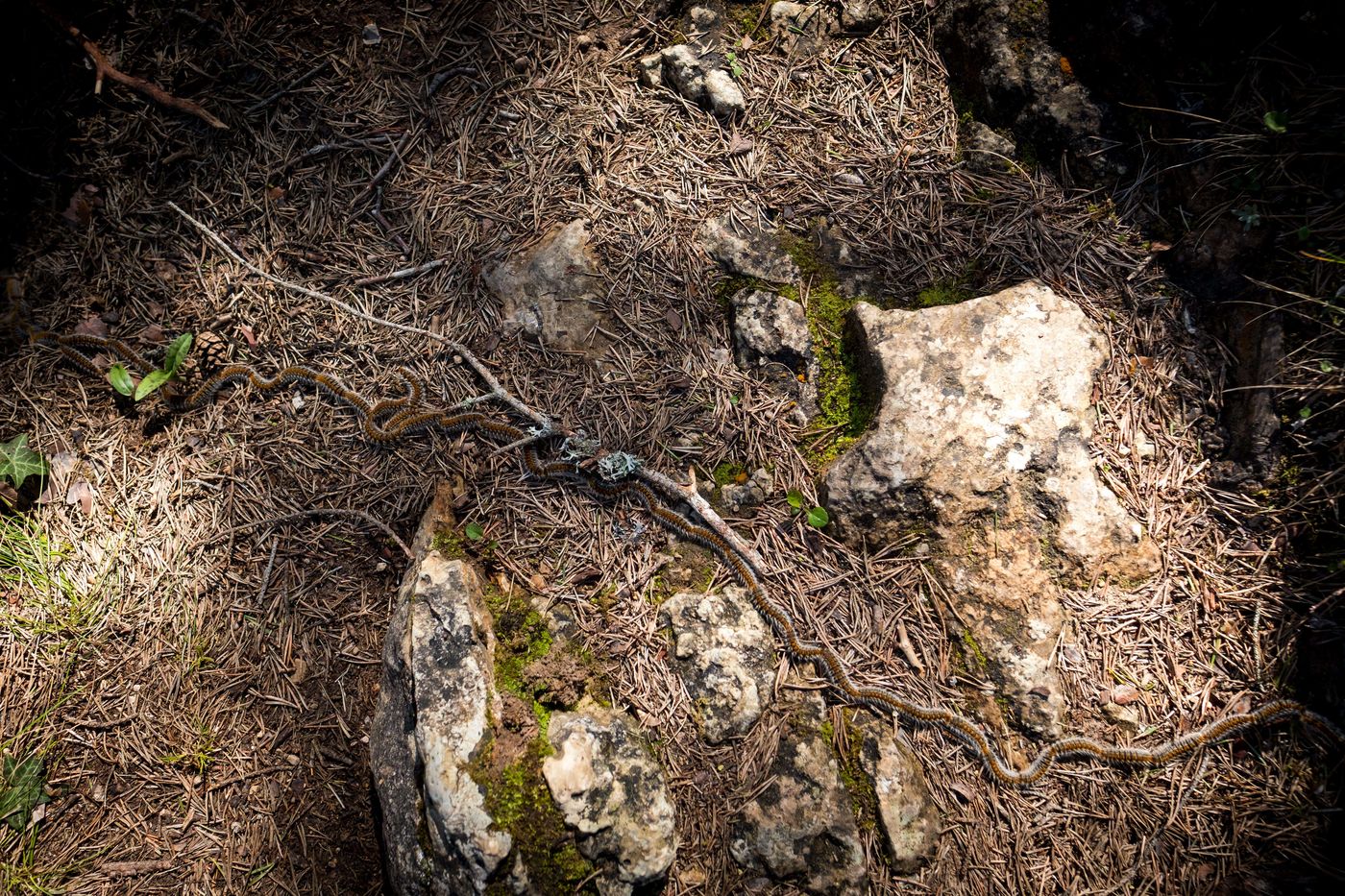 The pine processionary caterpillar is the larva of a moth, Thaumetopoea pityocampa. Processionary caterpillars have the ability to move in single file and feed on pine needles and cedars. The problem is that they cause a very significant weakening of the trees in question.