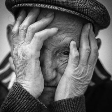 Photographic report and series of portraits of old people in black and white in a retirement home (EHPAD) in Ariège (Seix and Pamiers)