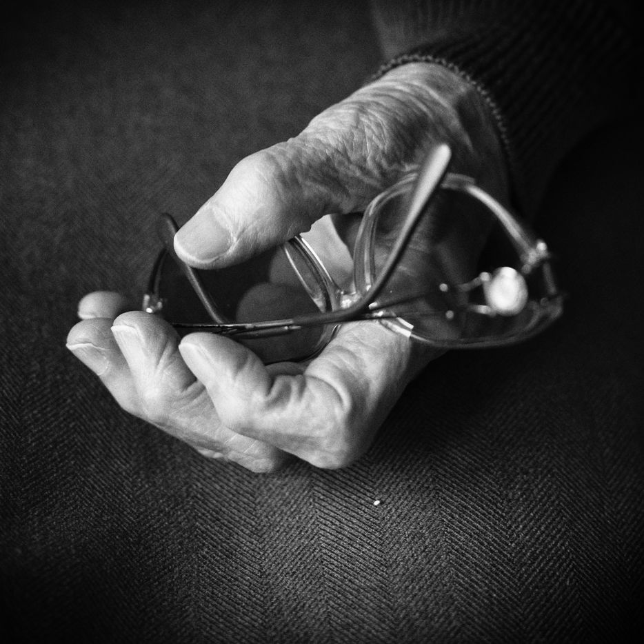 Reportage et série de portraits de personnes agées en noir et blanc dans une maison de retraite (EHPAD) en Ariège (Seix et Pamiers)