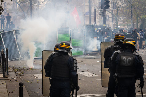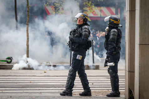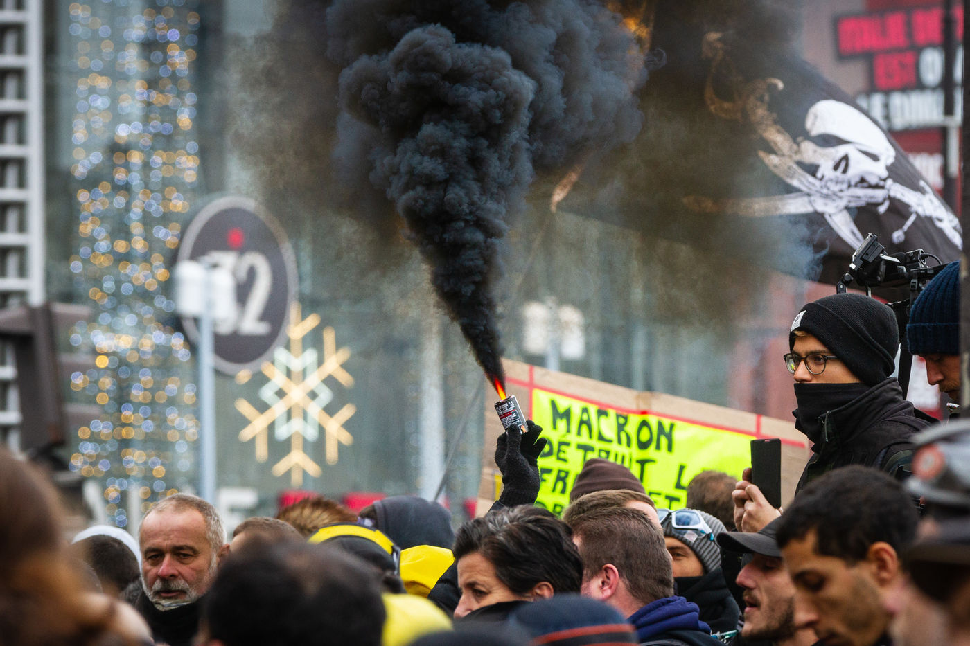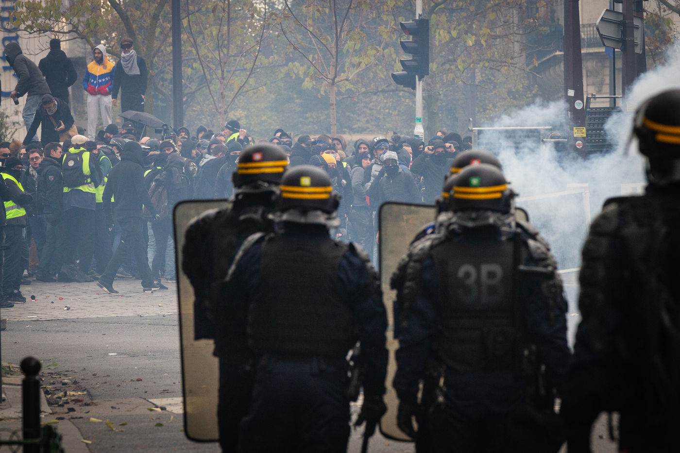 Act 53 of the Yellow Vests, anniversary of the movement's first year. The clashes between the police and the breakers began at the beginning of the day to celebrate their birthday, with a lot of violence and degradation at Place d'Italie. Paris, France, Saturday, November 16, 2019.