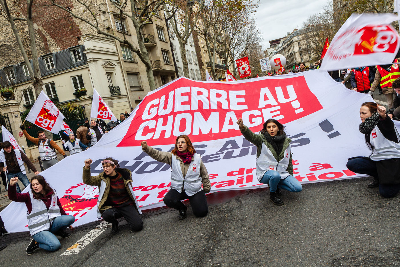 Demonstration at the initiative of the CGT trade union to protest against the reform of unemployment insurance, which will only bring more precariousness, for an all-encompassing social security system, for the compensation of all the unemployed. Paris, France, Saturday 07 December 2019.