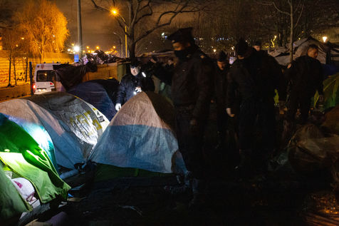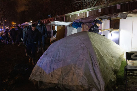 Evacuation et démantèlement des campements de migrants installés Porte d'Aubervilliers