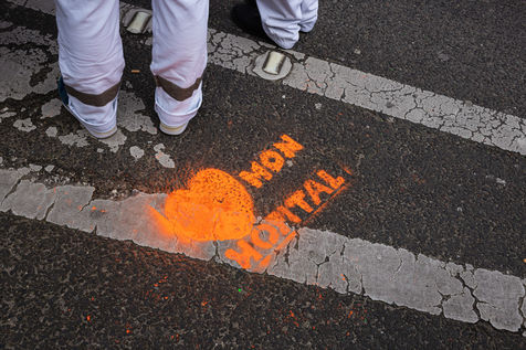 National demonstration by hospital staff, declaration of love at the public hospital. Paris, France, Friday, February 14, 2020.
