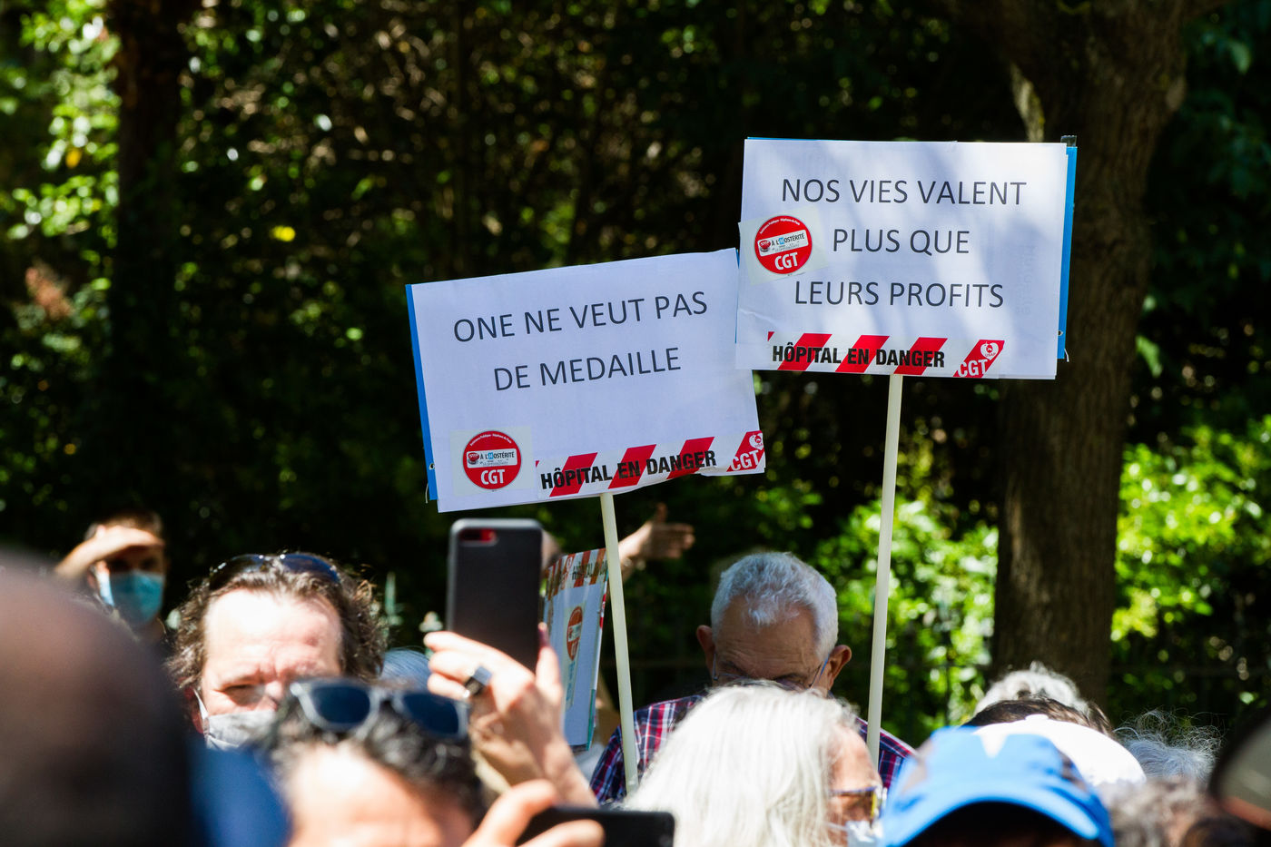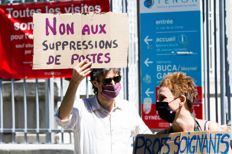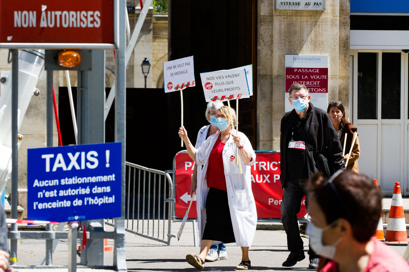 Gathering to support and pay tribute to the caregivers in front of the Tenon Hospital