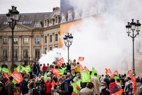 National mobilization day against the bioethics bill, fatherless PMA and GPA. Parisian rally on the Place Vendome. Paris, France, Saturday October 10, 2020.