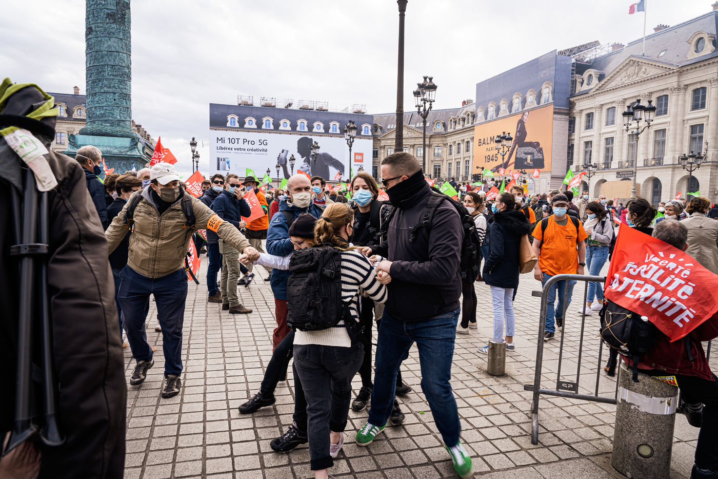 Journée de mobilisation nationale contre le projet de loi bioéthique, la PMA sans père et la GPA. Rassemble parisien sur la Place Vendome. Paris, Samedi 10 Octobre 2020.