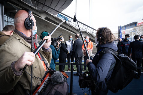 Visit of Mr. Jean CASTEX, Prime Minister, accompanied by Mr. Gérald DARMANIN, Minister of the Interior and Mr. Olivier VÉRAN, Minister of Solidarity and Health. Stade de France vaccination centerSaint-Denis, France, Tuesday, April 6, 2021.