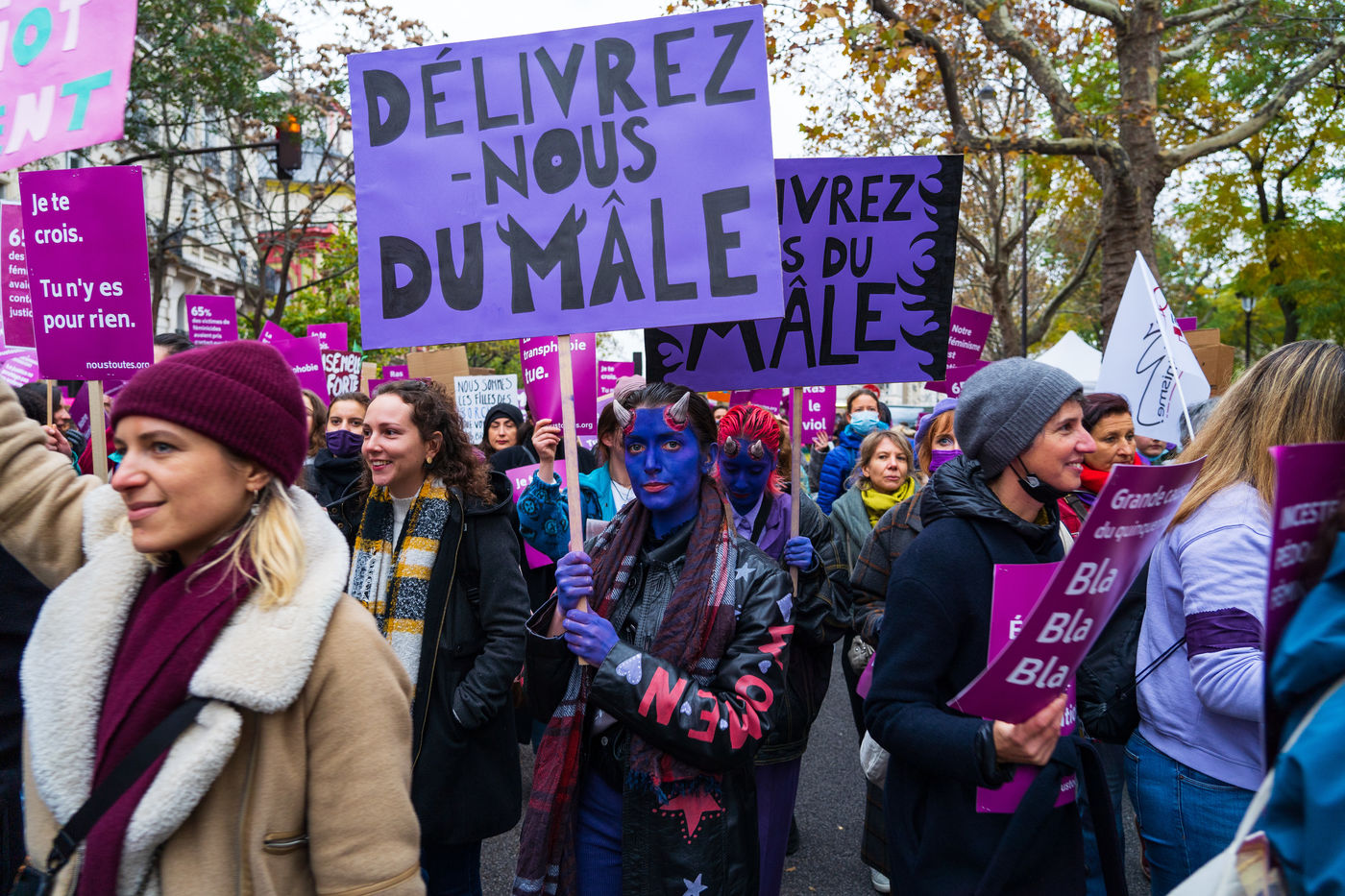 Grande manifestation féministe du samedi 20 novembre 2021 à l'appel du collectif Nous toutes contre les violences conjugales, sexistes et sexuelles, les féminicides, le patriarcat et en solidarité avec toutes les femmes victimes.