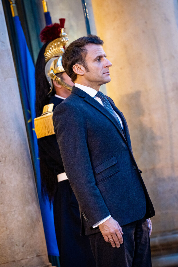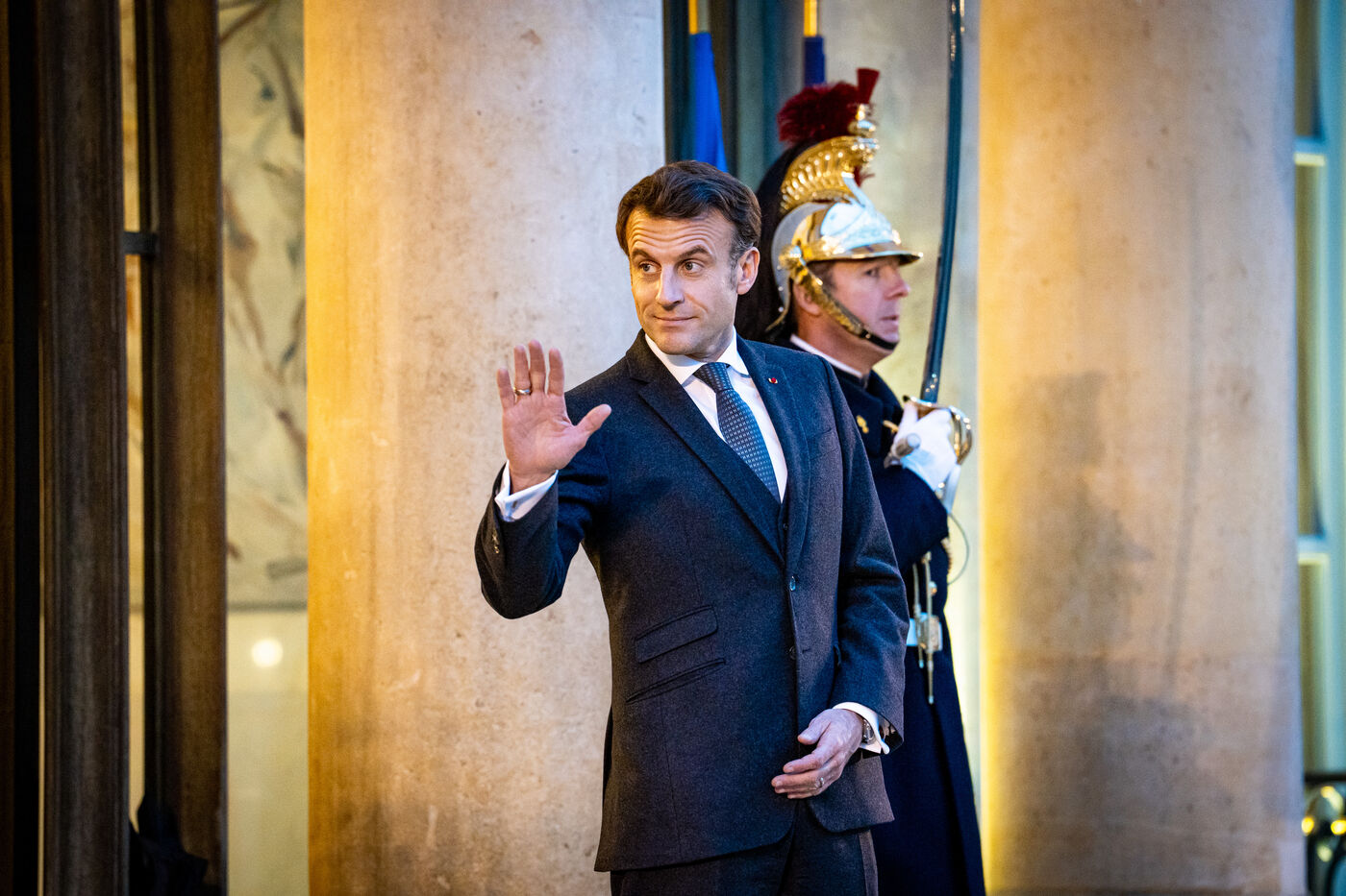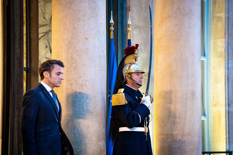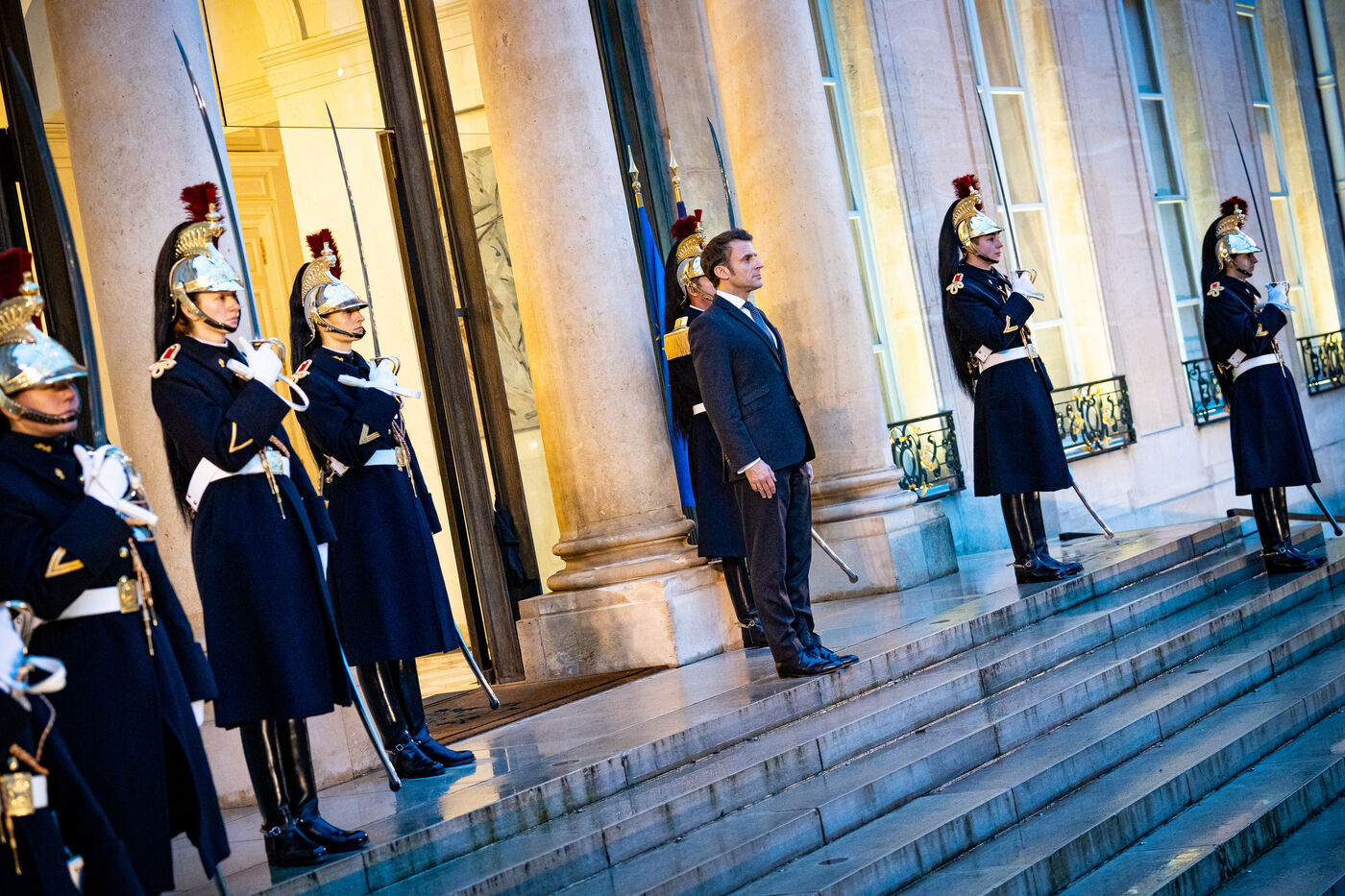 Reception in the courtyard of honor of the Elysee Palace. Meeting of the President of the French Republic with the President of the Republic of Guinea-Bissau and current President of ECOWAS. Strengthening of ties between France and Guinea-Bissau and evolution of the security situation in the Sahel and in the Gulf of Guinea. Thursday, January 26, 2023.