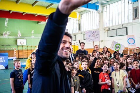 Séance des Jeux sportifs scolaires avec Anne Hidalgo et Tony Estanguet - Paris - 04/04/2023
