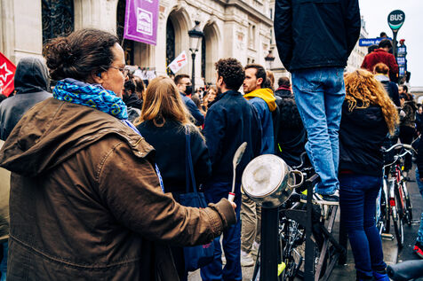 Gathering in front of the city hall of the 10th district of Paris to make noise at the time of the speech of the president of the republic (concert of pans, casserolade), then wild demonstration (spontaneous, not declared) in the streets of Paris. Demonstration against the reform of the pensions wanted by the government, with in particular the passage of the legal age of retirement to 64 years and the end of the special regimes. Monday, April 17, 2023.